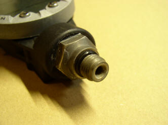 Náhrada vysokotlaké hadice s rychlospojkou Pokud jste majiteli některého z modelů potápěčských počítačů, které měří tlak v lahvi prostřednictvím vysokotlaké hadice s rychlospojkou, budete pravděpodobně dříve či později řešit potřebu náhrady této hadice. Bohužel, protože se to nejedná o běžné zboží, cena této hadice je obvykle vyšší, než 2000Kč. Pokud jste ochotni podstoupit menší nepohodlí spočívající v tom, že počítač bude napevno spojen s automatikou, můžete jednoduchým postupem nahradit poškozenou hadici s rychlospojkou obyčejnou vysokotlakou hadicí. Na následujících fotografiích je postup uveden na Aladinovi Air, ovšem lze jej aplikovat např. i na Suunto Cobra a další modely. 1) odšroubujte z počítače redukci na rychlospojku, objeví se standardní šroubení, jako je na manometru :